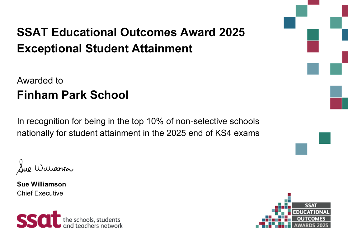 Finham Park School is proud to announce that it has been recognised by SSAT (The Schools, Students and Teachers Network) in this year’s Educational Outcomes Awards. This national award places the school among the highest-performing secondary schools in the country, based on the latest performance data.